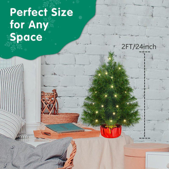 Bringstar 2ft Prelit Tabletop Christmas Tree, Small Artificial Green Xmas Tree for Home, Office